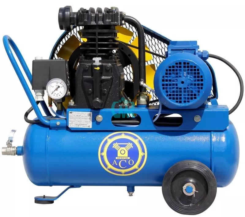 Поршневой компрессор К29-01 производства Бежецкого завода АСО с компрессорной головкой С412М имеет ременной привод от трехфазного электродвигателя мощностью 2.2 кВт напряжением 380 В. Реле давления Condor MDR. Производительность компрессора 360 л/мин, производительность по нагнетанию 275 л/мин. Максимальное давление компрессора 10 атм. Размеры 82 х 40 х 80 см, масса 90 кг.