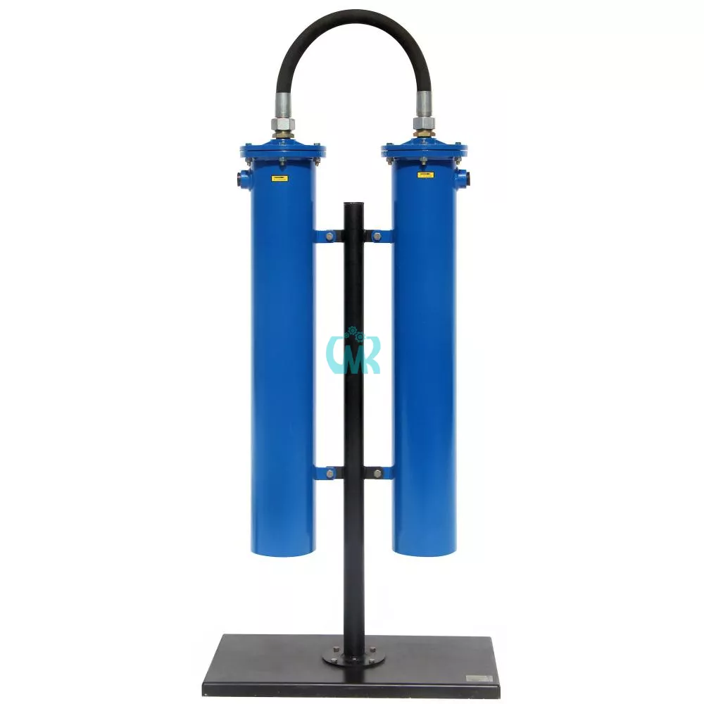 Фильтрационный модуль – двухступенчатый; состоит из двух последовательно объединенных блоков очистки (фильтров). Корпус блока очистки изготовлен из стальной трубы. На корпусе имеется патрубок (с внутренней резьбой см. таблица 2 для конкретной модели) для подвода-отвода магистрали сжатого воздуха. Торцы корпуса закрываются крышками. В нижней крышке для слива конденсата имеется резьбовая пробка (G3/8").